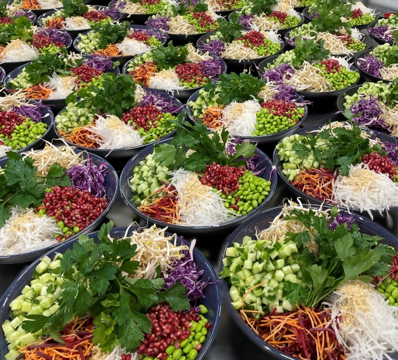 I vores næsten 1400 kvm. store industrikøkken tilbereder vores egne udlærte kokke spændende menuer, hvor der er fokus på flot og velsmagende mad..
